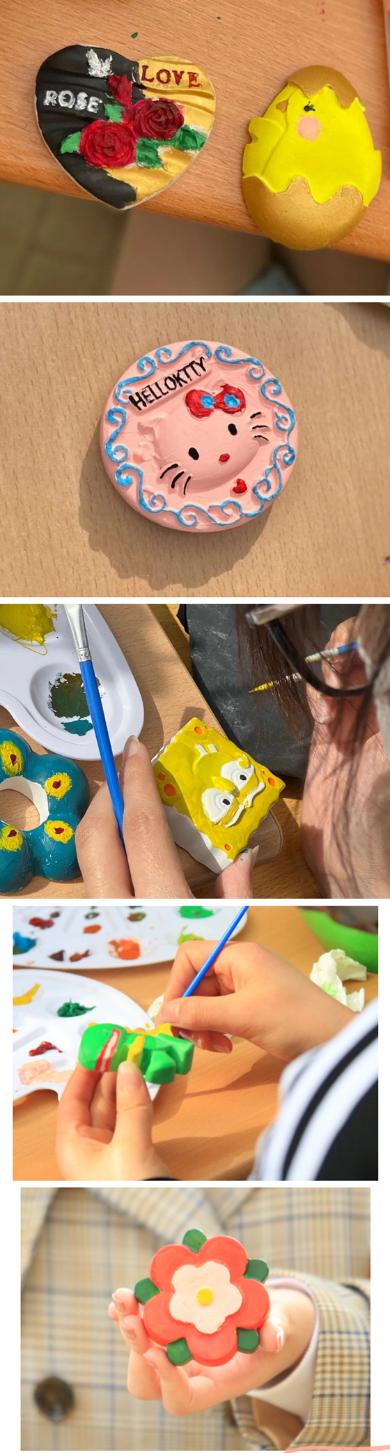 手握笔刷,轻触石膏,一涂一抹间,色彩在调色板上纷飞,思绪在想象中飘扬。同学们或沉浸于绘画中,或与三两好友分享着涂色的技巧,不知不觉,一个个五彩斑斓的石膏娃娃纷纷亮相,素白的石膏胚仿佛被鲜活的色彩和独特的创意赋予了生命。