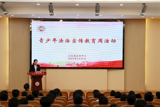 2023年5月8日至12日,是第五届江苏省青少年法治宣传教育周。江苏省南通中学从本周一开始,利用升旗仪式、班会课等时间,在校园内开展了一系列法治宣传教育活动。作为本周法治宣传教育活动期间的一项重要安排,5月12日下午,南通市人民检察院房栋副检察长亲临江苏省南通中学,指导我们的校园法治工作,并为高一年级的同学们开设了一堂主题为《远离学生欺凌和性侵害,做学法知法守法用法好少年》的主题教育课。陈建云校长热情接待了房检察长一行,并主持了此次法治教育活动。