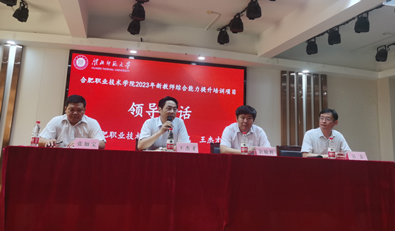 2023年7月10日,合肥职业技术学院2023年新教师综合能力提升开班典礼在淮北师范大学滨湖校区举行,淮北师范大学副校长余敏辉、合肥职业技术学院党委书记王杰才出席。