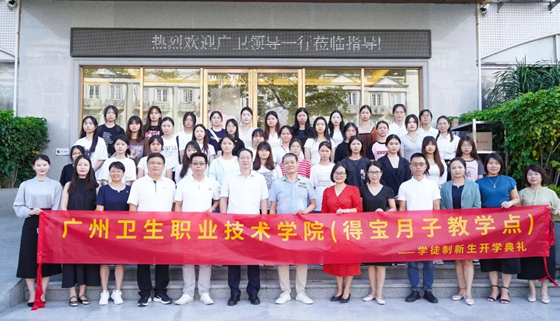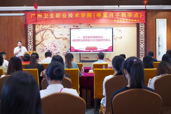 学校纪委书记梁东标带领护理学院党总支书记黄诚、副院长彭霞、学工办主任黄惠斌、马克思主义学院(筹)形势与政策教研室主任陈雅容、广东省乡村振兴产业联合会职业教育与产业发展专委会秘书长麦俊晖等一行走进得宝月子中心,为现代学徒制班50名同学开讲“思政第一课”。