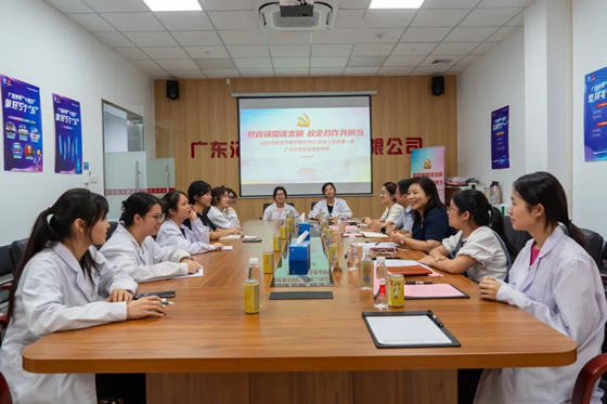 学校校长卢穗华带领公共卫生与健康学院(筹)工作负责人刘成武、马克思主义学院(筹)形势与政策教研室主任陈雅容等一行赴广州瑞能有限公司,为健康管理专业“瑞能”订单班的同学们开讲“思政第一课”。
