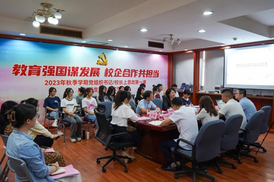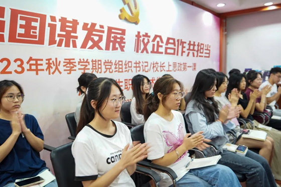 杨翀副校长通过解读职教政策法规、党的二十大报告等文件,亮明校企合作的总体目标和本次“思政第一课”的教学目标,希望通过促进产教融合,建立“共研、共建、共认、共享、共赢”的育人格局。
