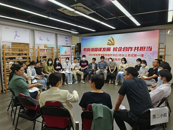 为进一步开展思政课教学,深化校企合作,产教双向赋能,拓宽职业教育成才通道,2023年秋季学期伊始,广州卫生职业技术学院将思政课堂“搬到”企业,由学校领导带队,到企业订单班、现代学徒制等校外教学集中点,为在企业学习、实习的学生们讲授以《教育强国谋发展,校企合作共担当》为主题的“思政第一课”。