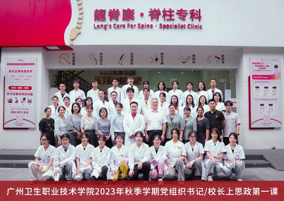 学校副校长杨翀带领康复保健学院党支部书记黄雪群、工作负责人张雪、马克思主义学院(筹)形势与政策教研室主任陈雅容等一行赴龙脊康医疗门诊,为“龙脊康”订单班学生开展“思政第一课”。