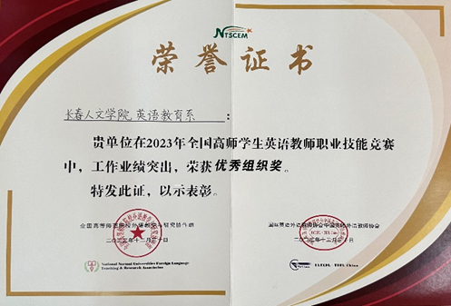 日前,2023年全国高师学生英语教师职业技能竞赛决赛在长春师范大学举行。长春人文学院外国语言文学学院英语教育系荣获优秀组织奖,11名学生分获一、二等奖。