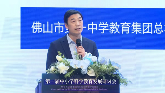 下午2点20分研讨会正式开始。论坛开始前,首先由佛山一中范自军校长致欢迎辞。范校长代表学校对莅临现场的嘉宾、观众表达了热烈欢迎,介绍了佛山一中的悠久历史,硕果累累的办学成就,与科技教育方面的实践经验,刚刚被授予“北京大学博雅人才共育基地”的佛山一中,一直致力于科技与创新教育,成立了佛山市青少年科学院,推动大、中、小学协同育人,学生屡次获得国际国内各项科创奖项,并大力建设科学实验室。范校长也表达了希望佛山一中与更多顶尖大学、顶尖中学、科研机构共同探索科学教育的实践。