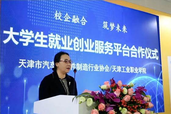 为全面落实教育部对高校毕业生就业创业工作的决策部署,全力促进学院毕业生高质量充分就业,3月20日上午,天津工业职业学院与天津市汽车零部件制造行业协会在国家会展中心(天津)举办“校企融合筑梦未来”大学生就业创业服务平台合作仪式。双方代表及会员企业出席仪式,天津市汽车零部件制造行业协会秘书长兼常务副会长许文静主持会议。