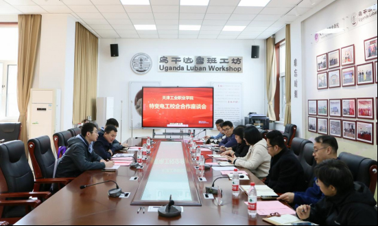 2024年3月21日上午,特变电工京津冀智能科技有限公司来访天津工业职业学院,并在学院鲁班工坊空中课堂召开了双方产教融合校企合作对接会。参会人员包括京津冀园区经理马晓斌、人力资源部徐文杰、人力资源部白志伟,天津工业职业学院教学副院长张秀芳、校企合作和对外交流办公室主任刘红、招生就业指导办公室主任邓昊、经济管理工程系书记兼主任蔡欣、机械工程系书记兼副主任李焱、工业与信息化系副书记葛慧杰、校企合作和对外交流办公室副主任梁国勇,会议由刘红主任主持。