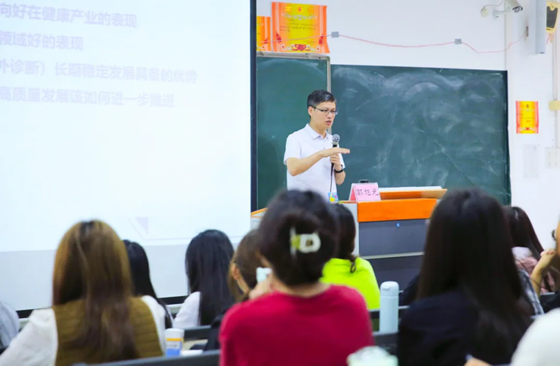 结合医学检验的专业特点,广州医科大学附属第三医院副教授、副主任技师郭旭光从医院管理者和科室一线负责人的角度,为检验医学专业的学生讲授了主题为“新质生产力引领检验医学高质量发展”的内容。他介绍了中国经济回升向好在健康产业的表现和检验医学专业领域好的表现,指出要在优化医疗资源分配机制、加强科技创新、深化医疗卫生体制改革等方面进一步推进未来检验医学高质量发展。