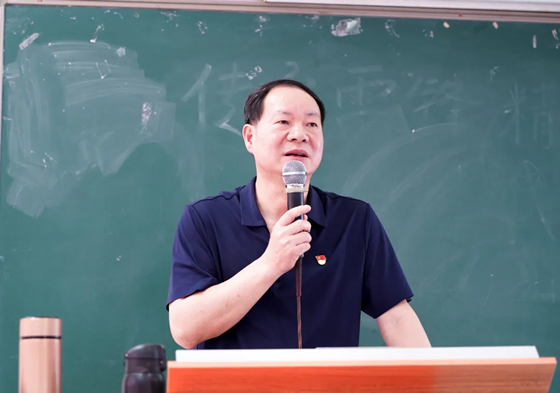 余莎书记从红色精神学习和传承讲起,重点强调强国建设(“厚植家国情怀,励志担当大任”)、基层医疗(“深耕基层医疗,守护群众健康”)、自我成长(“不忘学医初心,投身医疗建设”)三点要求,层层递进地引导学生将实现中华民族伟大复兴的责任融入到自身的学习和工作中,以实干践行使命担当。