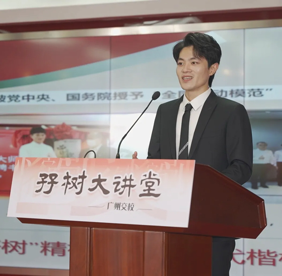 随后,广州市交通运输职业学校优秀毕业生、全国劳动模范、广汽本田汽车有限公司技师曾俊钦以“传承‘孖树’精神,做新时代楷模”为主题,分享了自己在交校寻向定标、在赛场接续奋斗、在岗位创新求变的故事。他提到,在当今的国家经济高质量发展的东风下,每个人都能为自己打造出彩的人生,而选择合适的道路并且不断地坚持与努力,是成功的前提。在取得成绩以后,要继续脚踏实地,学会协作,才能实现更高更远的目标。