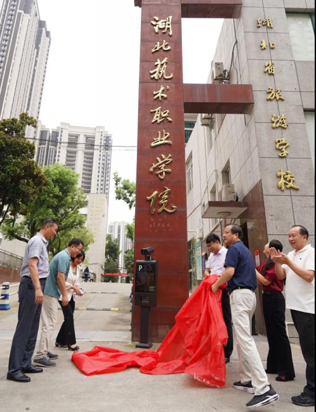当天,湖北艺术职业学院领导共同为湖北艺术职业学院南湖校区校门牌匾揭牌。(编辑:赵玉芳)
