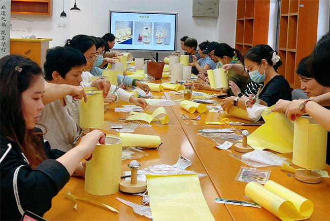 活动由美育专业老师王思懿讲解指导。她介绍了押花艺术的历史文化、押花的制作工艺和押花台灯的制作过程,并现场指导大家制作押花台灯。参与者们纷纷动手将鲜花、绿叶变为台灯上的精美装饰,感受非遗文化的独特魅力。