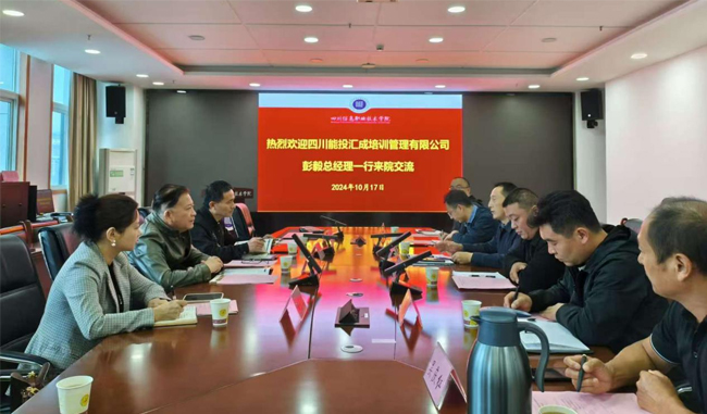 10月17日,四川能投汇成培训管理有限公司总经理彭毅来四川信息职业技术学院洽谈校企合作事宜。副院长母中旭热情接待了彭毅一行,并在综合楼0903会议室举行座谈会。电子与物联网学院、现代制造学院、智能控制学院及校企合作办等相关负责人参加座谈。