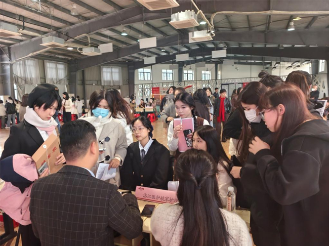 2024年12月19日,在泉州市民政局、鲤城区民政局的支持和指导下,泉州医学高等专科学校护理学院举办2025届毕业生 “护航天使,筑梦养老”校园招聘会。泉州市民政局四级调研员李火生、校党委副书记王翠玲、副校长林迳苍、招生就业处处长陈旭东、护理学院党总支书记洪迎迎现场指导,与招聘单位和毕业生深入交流,了解养老行业需求动态,促进供需匹配对接。