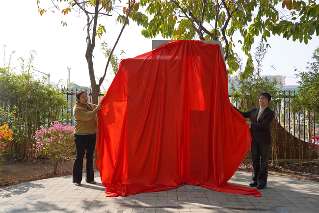 广东省疾控中心质量技术部主任武婕和学校党委书记余莎共同为博济园“大思政课”实践教学基地揭牌