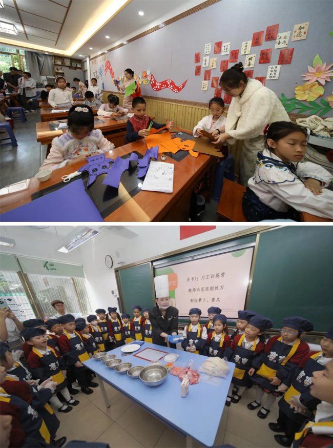 越秀区朝天小学党支部书记、校长袁慧表示,“这些课程突破了传统思政教育的局限,把思政教育‘小课堂’延伸到社会‘大课堂’。孩子们在学习传统文化技艺的过程中,理解了工匠精神和文化传承的意义,让思政教育在与社会场景的联动中释放无限活力。”目前,朝天小学已将广州市旅游商务职业学校的职业启蒙课纳入学校综合实践课程表,形成“双师课堂”。
