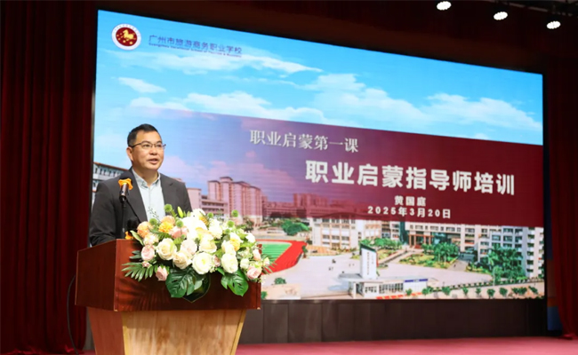 广州市旅游商务职业学校党委委员、副校长黄国庭为朝天小学全校师生、研学基地导师开授第一课,深入浅出地介绍了职业启蒙的必要性以及职业启蒙接地气的“新玩法”,给孩子们种下职业梦想。