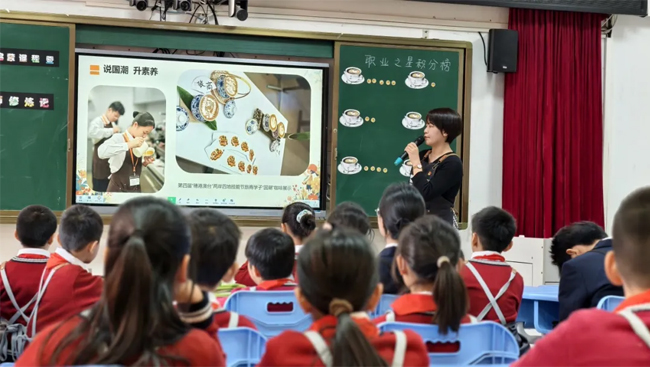 本次活动展示的课程亮点满满,将传统文化与职业启蒙紧密结合。广州旅商职业启蒙课程团队为孩子们带来了《粤点匠心磨砺记》《海丝茶商养成记》《咖啡师修炼记》等职业启蒙课程,得到了与会粤港澳教育专家的高度赞誉。