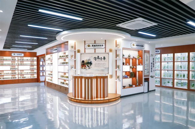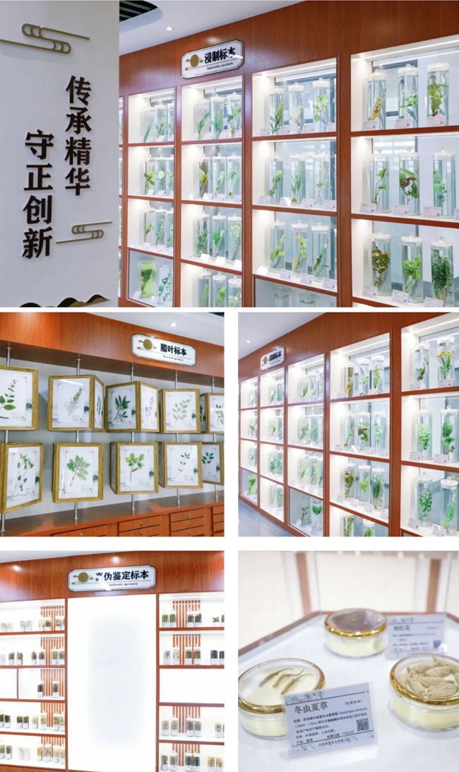 中医药标本馆是基地的核心亮点之一。这里收藏了植物、动物、矿物等中药标本一千余种,此外,展示区还有历代中医药名家文化墙、八段锦互动体验平台、全国各地药材资源分布沙盘等特色展项,让参观者在互动中了解中医药文化。