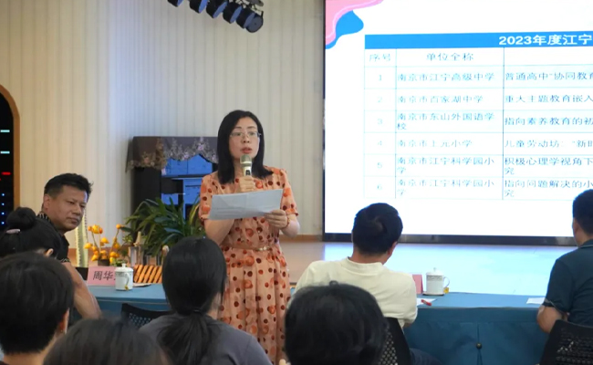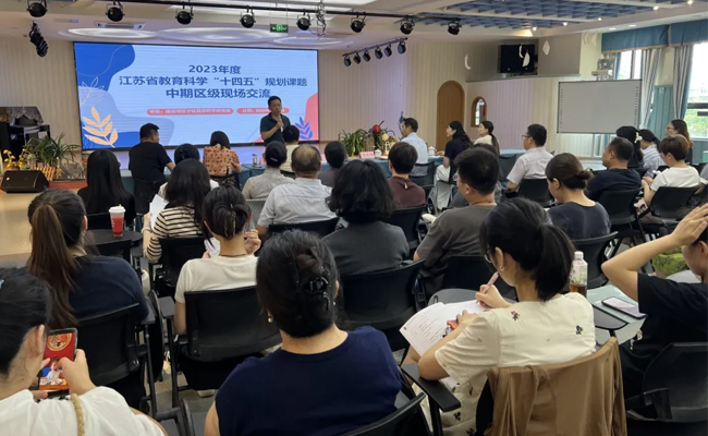 科研深耕不辍,交流方能致远。为筑牢“十四五”教育科研根基,把脉课题研究进程,助推阶段性成果落地生花,2025年9月23日下午,“十四五”省级教育科学2023年度规划课题中期区级现场交流会在江宁区九龙湖幼儿园举行。浦口区教师发展中心教育科研处张建主任、江宁区教科室相关专家莅临指导,与2023年度立项的省规划课题主持人及核心成员齐聚一堂,共研共进。