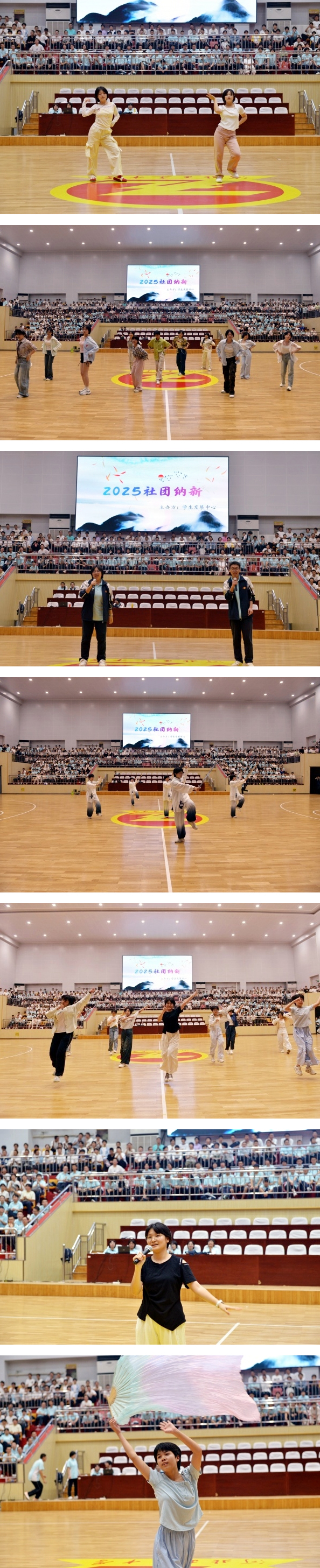 模联社展示了社员自主设计模型、文学社举办了“飞花令” 诗词接龙小游戏......在体育馆内,舞蹈社、说唱社、漫研社、爱乐社、模型社、心协社、太极拳社等各具特色的学生社团,不仅布置了精美的展台和宣传展板,还设置了互动体验区。他们纷纷亮出“看家本领”,热情地向新生介绍社团的日常活动与特色亮点。同学们穿梭于各个展位之间,或认真咨询社团详情,或踊跃填写报名表格,或积极参与互动游戏,脸上满是对未来社团生活的期待与憧憬。