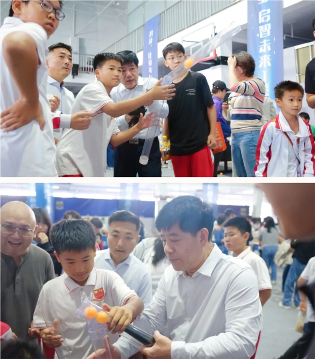 “乒乓球机关炮”威力大爆发性强,发射声吸引了许多家长、同学的目光,引来阵阵惊叹。