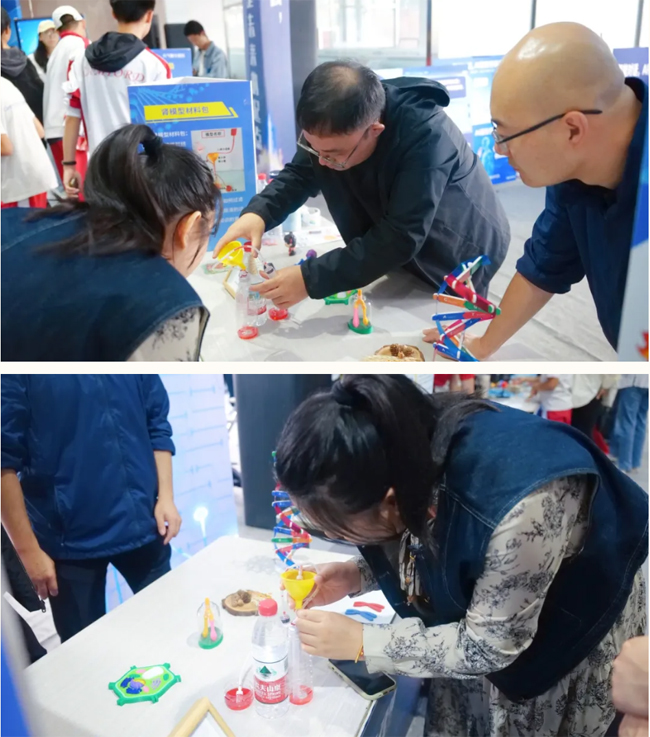 在义卖区,摆满了小学部同学们制作的科创手工艺品。这里既有从大自然中搜集制作的昆虫标本,还有精致可爱的微缩景观,不仅有用废旧材料制作的机器模型,更有扭扭棒制作的花篮、簪花头饰......作品琳琅满目,让人目不暇接。同学们热情地介绍着自己的创作思路,家长、师生和嘉宾们则纷纷挑选购买心仪的作品,欢笑声与讨论声在会场中交织。