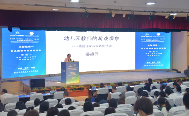 在主旨报告环节,鄢超云教授以《幼儿园教师的游戏观察—搭建理论与实践的桥梁》为题,聚焦新时代幼儿园教师“观察”“解读”“支持”三大核心基本功,围绕“观察是什么”“观察什么”“怎么观察”三大核心内容理论结合案例展开讲解,旨在通过科学的游戏观察方法,让教师更精准地把握幼儿游戏的发展需求,切实落实《幼儿园保育教育质量评估指南》的相关要求,推动师幼互动从“被动应对”转向“主动支持”,打通幼儿园教师游戏观察理论与实践的有效衔接,助力教师提升幼儿游戏活动的观察、支持与引导能力,从而提升保教工作质量。