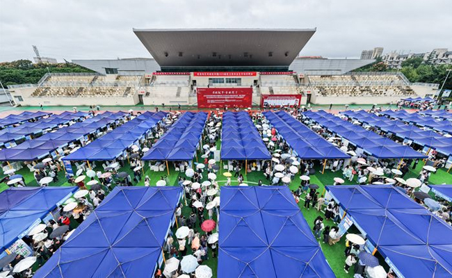 金秋送爽,英才汇聚。10月11日,2026年成渝地区双城经济圈医药卫生毕业生供需见面会暨“蜀汇菁英”四川省高校毕业生就业常设市场成都中医药大学专场招聘会在学校温江校区顺利举行。本次招聘会吸引来自全国22个省市的300余家优质用人单位参会,提供岗位超7000个,覆盖医疗卫生、医药企业、大健康、教育、金融保险、高职院校等领域。8000余名校内外毕业生到场求职,最终近2000名学子与用人单位初步达成签约意向,现场呈现供需两旺的热烈态势。