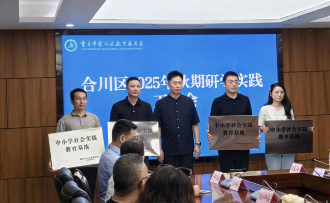 近日,合川区教委召开了2025年秋季学期研学实践工作会,会上就新批准的四个区级中小学社会实践基地举行了授牌仪式。重庆人文科技学院“生命科学与健康教育基地”获批。