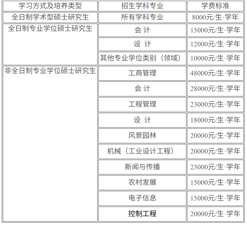 2. 学校针对全日制硕士研究生设立研究生学业奖学金、国家助学金、国家奖学金等。学业奖学金第一学年分为8000元、4000元2个等级,第二学年起分为12000元、8000元和6000元3个等级;学制内非定向且无固定工资收入的学生每年享受国家助学金6000元;符合参评条件的优异学生可申报国家奖学金,奖励标准为每生每年20000元。
