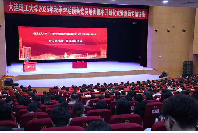 为深入学习贯彻习近平总书记关于党校工作的重要论述,落实《全国党员教育培训工作规划(2024-2028年)》,提升预备党员的政治素养与党性修养,10月15日,大连理工大学2025年秋季学期预备党员培训在学生文化中心剧场集中开班。主校区880余名师生预备党员现场参训,开发区校区、盘锦校区110余名师生预备党员共同在线参训。本次开班仪式由学校党校主办,外国语学院党委分党校承办。