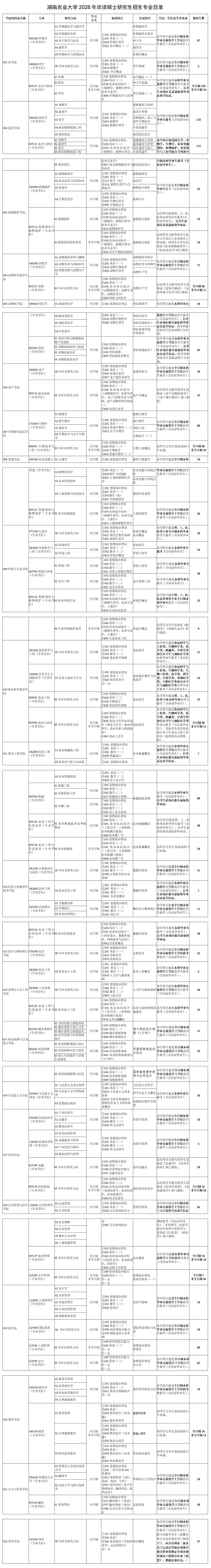 湖南农业大学2026年攻读硕士研究生招生专业目录