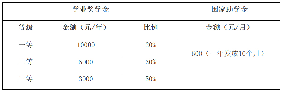 我校为全日制非定向硕士研究生提供学业奖学金和国家助学金(标准如下表,参评条件以学校相关文件为准,学校将从激励学生创先争优的角度出发,进一步优化研究生学业奖学金标准,具体事宜请关注学校网站相关通知),全日制定向研究生和非全日制研究生不提供学业奖学金和国家助学金。推免生入学第一学年全部享受一等学业奖学金。