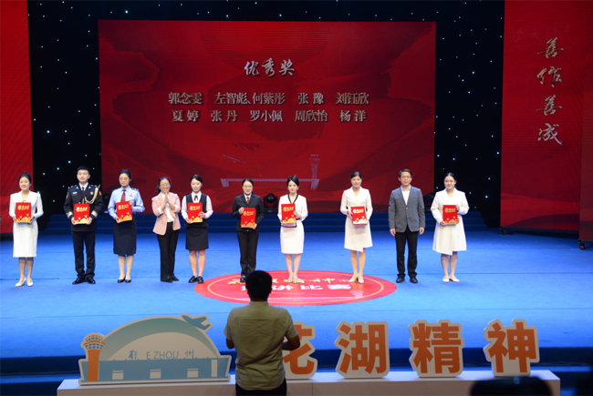 比赛中,来自全市各单位的27位选手依次登台,以饱满的热情和昂扬的精神状态,讲述了各行各业以“花湖精神”为指引、争做先锋的鲜活故事。张丹老师结合学校航空工程学院办学发展历程,以“以花湖精神为炬 书航空职教新篇”为题,分享了鄂州职业大学师生攻坚克难、敢闯敢试,书写航空职教新篇章的先进经验和感人事迹,镌刻着鄂州职大人践行“花湖精神”的坚毅决心,赢得现场阵阵掌声,最终获得比赛优秀奖。