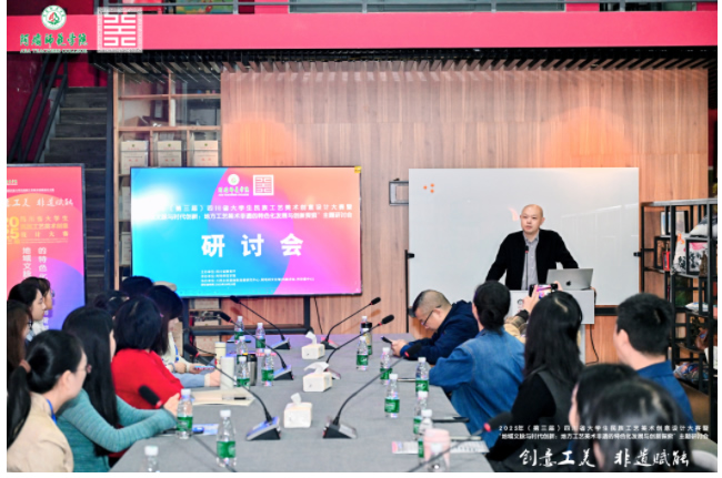 来自省内的四川旅游学院、四川艺术职业学院、成都纺织高等专科学校等13所高校齐聚一堂,以“地域文脉与时代创新:地方工艺美术非遗的特色化发展与创新探索”为主题,分享了纤维艺术课程“四维协同”教学模式、构建藏羌绣文化基因库成果、非遗影像创作“三大路径”等各自在非遗教育领域的创新实践。与会专家学者一致认为,“以赛促学、科技赋能、校地协同”是推动非遗传承发展的关键所在。