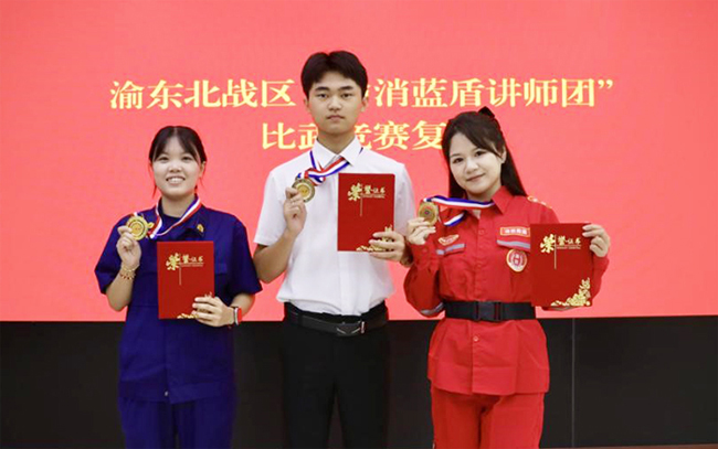近日,从首届“渝消蓝盾讲师团”金牌讲师比武竞赛渝东北片区赛赛场传来喜讯。重庆安全技术职业学院智慧建造与工程安全学院秦杨春同学在来自渝东北片区 10 余个区县,涵盖专业讲师与志愿者两大组别的数十名选手中脱颖而出,凭借其出色的综合表现,在比赛中荣获志愿者组第一名的优异成绩。