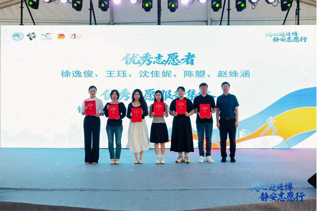10月17日,苏河工场隆重举行“同心迎进博 静安志愿行”——2025年静安区“迎进博”志愿服务主题活动暨“活力苏河 益路同行”志愿健康跑活动。活动中表彰了在第七届中国国际进口博览会中表现突出的志愿服务集体与个人。其中,上海行健职业学院教师陈曌与学生沈佳妮因在第七届进博会期间担任专业志愿者,并以出色的服务表现和专业素养,荣获“第七届进博会优秀志愿者”称号,展现了行健师生卓越的精神风貌与高度的社会责任感。