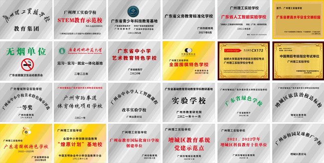 此外,学校还先后荣获全国围棋特色学校、全国青少年软件编程等级考试中心、全国中小学创新创造教育"燎原计划"基地校、广东省青少年科技教育基地、广东省义务教育标准化学校、广东省绿色学校、广东省中小学艺术教育特色学校、广东省人工智能教育实验学校、广州市跆拳道体育传统项目学校、增城区教书育人先进集体、剑桥大学英语考评分考点等荣誉称号。