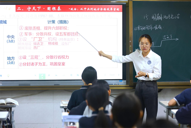 此外,学校注重传统文化的传承,通过经典诵读工程、传统文化工作坊等形式,将书法、国画、民乐、剪纸、戏剧等非遗技艺纳入常规教学,让学生在传统文化的熏陶中,厚植文化根基。学校还突出外语特色,开展双语沉浸式课堂,开设英语、韩语、日语等多语种选修课程,培养学生的国际视野。高中部开设了体艺特色班、港澳台联考班,并采取个性化培养机制,为学生提供培优辅弱课程,且该课程作为常规工作进行,不额外收费。