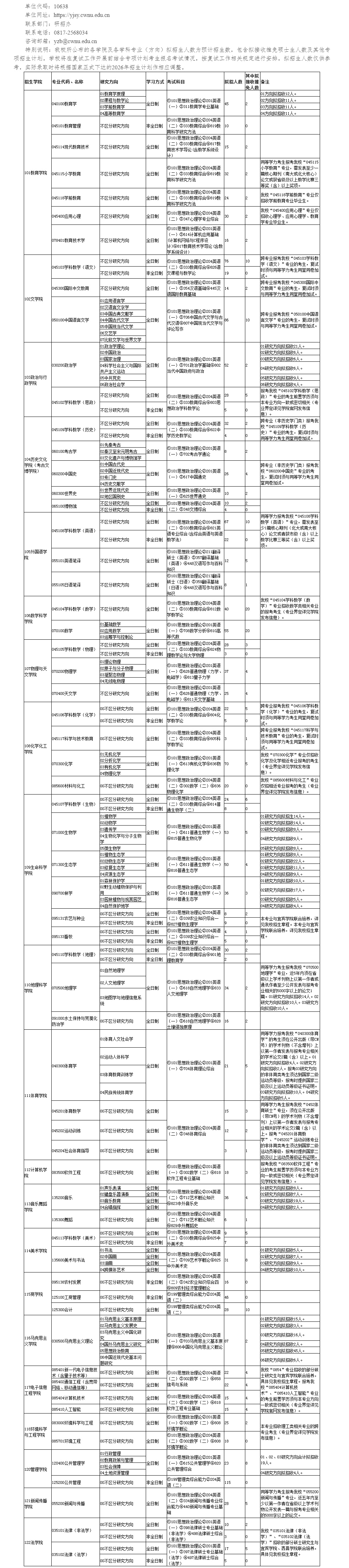 西华师范大学2026年硕士研究生招生专业目录