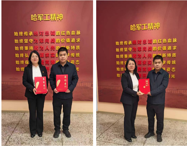 活动中,哈尔滨金融学院与哈军工纪念馆共同签署实践教学基地合作协议,并为基地揭牌。双方围绕资源共享、课程共建、活动共办等方面达成深度合作意向,同时聘请哈军工纪念馆负责人担任学院客座教授,并现场颁发聘书。