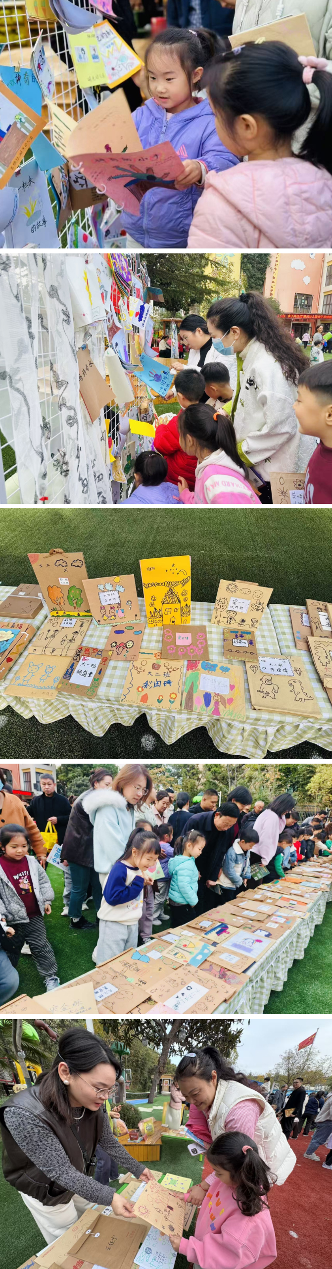 活动尾声,幼儿园还为孩子们准备了两份“阅读惊喜”。“童心绘世界,绘本藏美好”创作展上,大班小朋友亲手绘制的创意绘本充满童真与想象,吸引家长与孩子驻足观赏;而充满悬念的“绘本盲盒”,则让每个孩子在拆开的瞬间收获惊喜,进一步激发了他们对阅读的期待。