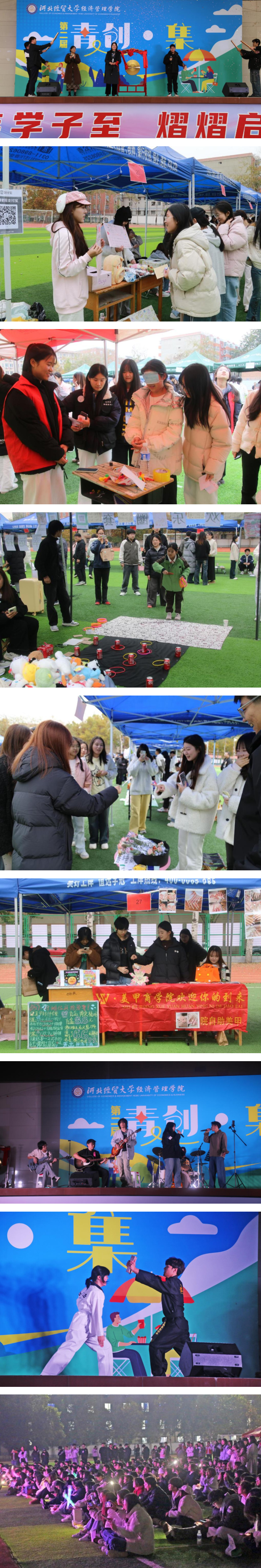 11月10日下午,河北经贸大学经济管理学院第二届“青创·集”创意市集在操场正式启动,院党委书记蔡杨鸣锣开市。60余个由学生自主策划与经营的展位同步开放,将操场变为一个融合创意、实践与协作的校园实训场。活动现场人流如织,气氛热烈。此次活动由院团委主办,信息系承办。