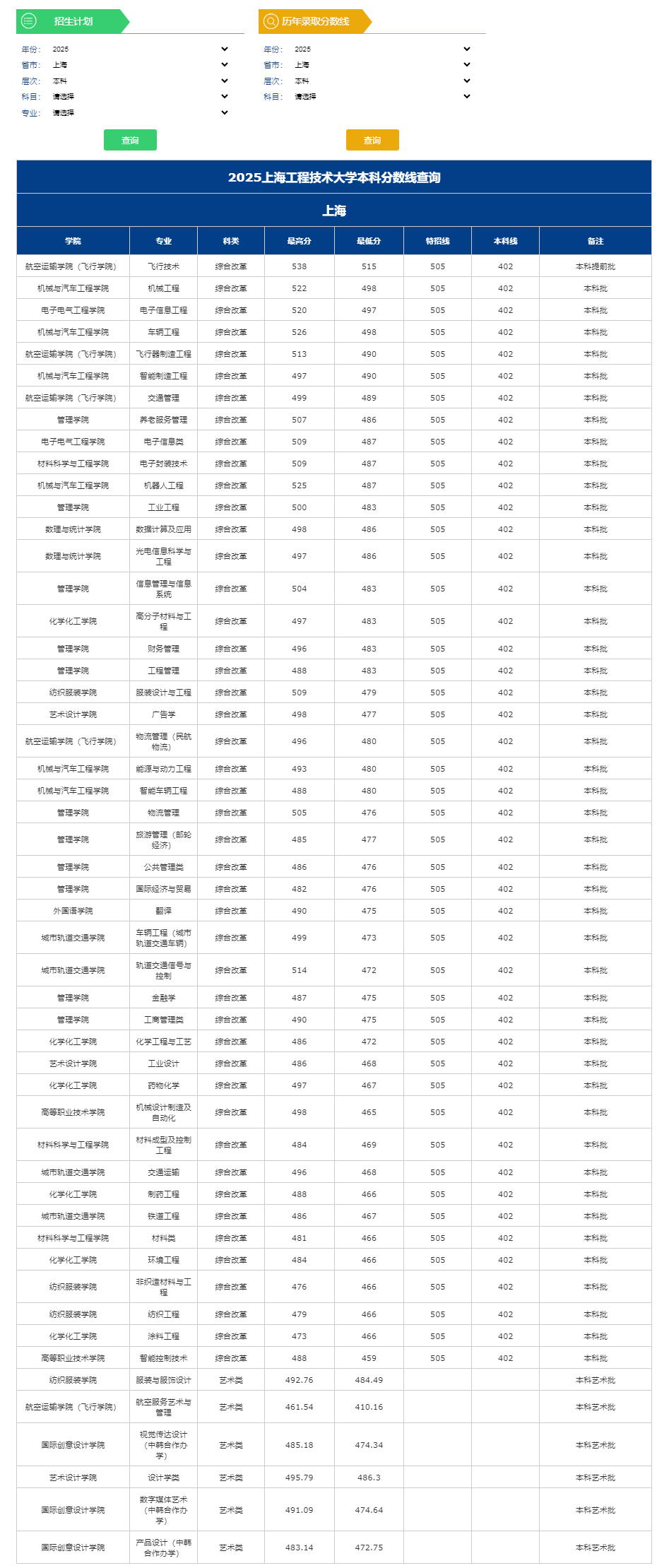 上海工程技术大学2025年分数线(上海 本科)