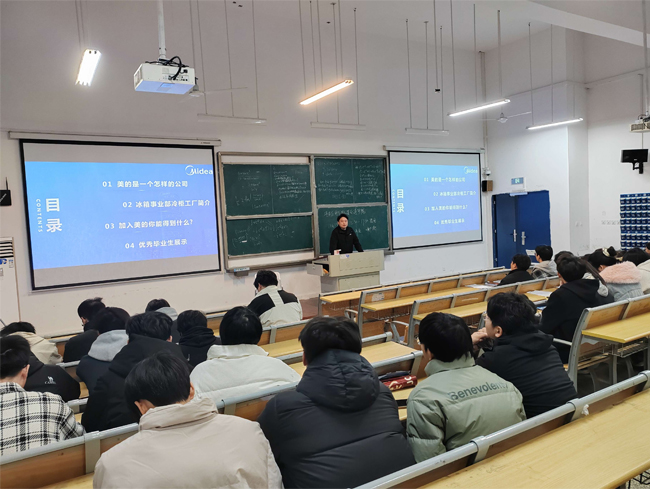 招聘会结束后,维信诺、宁德时代、美的等七家知名企业在北教学楼举办了专场宣讲会。企业代表们详细向学生们介绍企业的发展规划、岗位需求以及职业成长的路径,帮助学生们更加深入地了解行业的前沿动态和用人标准,也为他们提供了一个与企业深度交流的机会,进一步明确了职业发展方向。