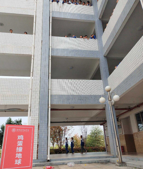 鸡蛋撞地球挑战赛项目比赛现场,这是一场结构力学与缓冲设计的创意比拼。学生们脑洞大开,用泡沫、一次性筷子、降落伞、皮筋等材料制作保护装置,将生鸡蛋置于其中从高空坠落。有的采用多层缓冲结构吸收动能,有的借助降落伞减缓下降速度,巧妙运用动量定理守护鸡蛋安然着陆,充分展现了天马行空的想象力与解决实际问题的能力。