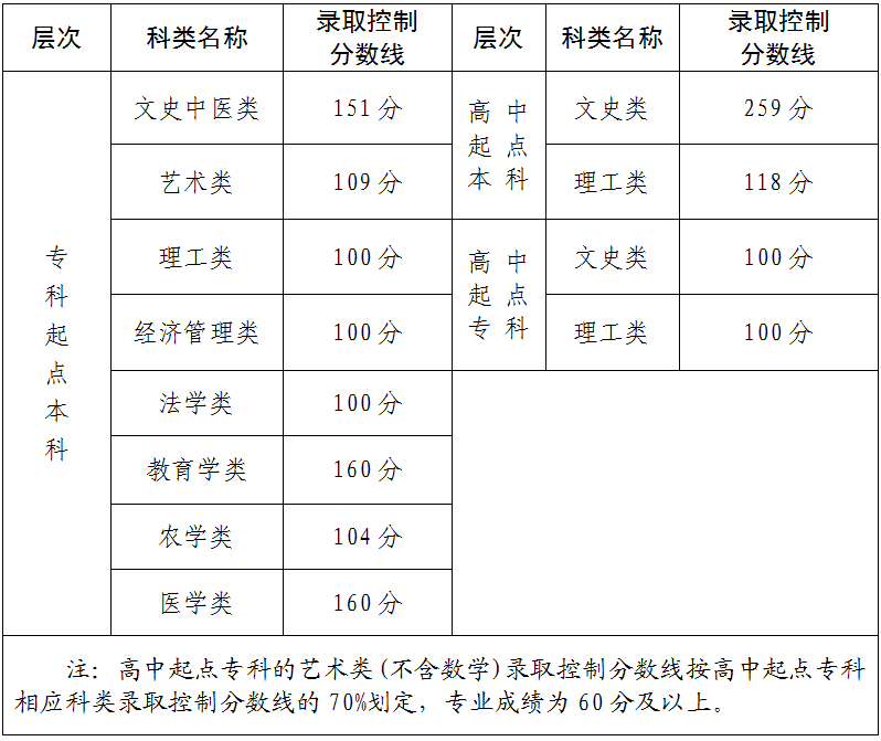 经省教育厅专题会议研究,确定2025年福建省成人高校招生各类录取控制分数线如下: