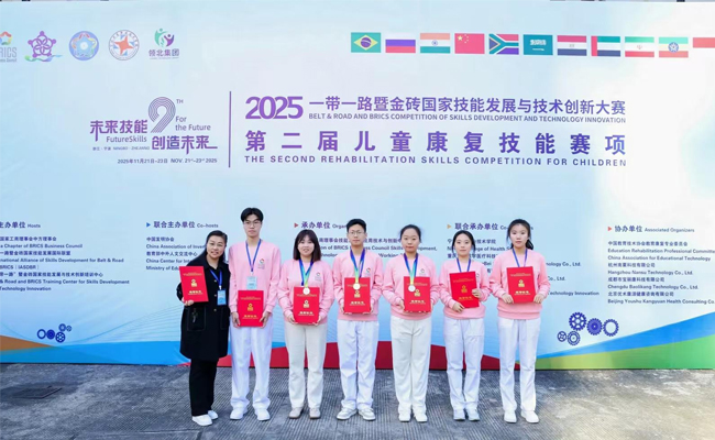 作为经外交部备案、金砖国家工商理事会批准的国际赛事,该大赛是检验职业教育国际化人才培养的重要平台。学院以此为契机,将大赛标准融入日常教学,构建“课堂——实训——竞赛”一体化的培养体系,真正实现“以赛促改、以赛促建”。未来,健康福祉学院将继续发挥职业技能竞赛的引领作用,深化“产教融合、校企合作”,优化儿童康复等专业人才培养路径,为行业输送更多高素质技术技能人才。(撰稿:王波 车锦礼 编辑:许庆华)